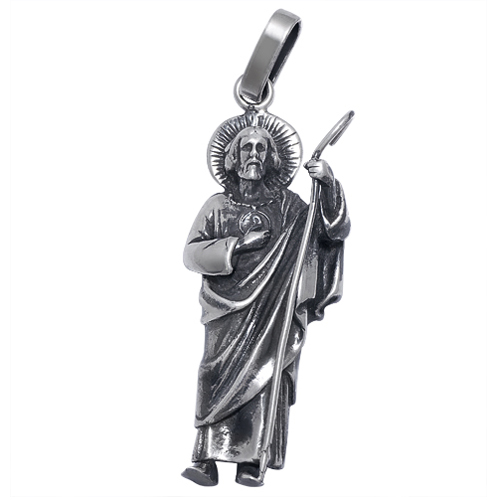 STAINLESS STEEL RELIGIOUS PENDANT WITH SAN JUDAS WITH BLACK COLOR
