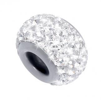 STAINLESS STEEL PENDANT IN BEAD SHAPE FOR PANDORA BRACELET WITH WHITE CZ