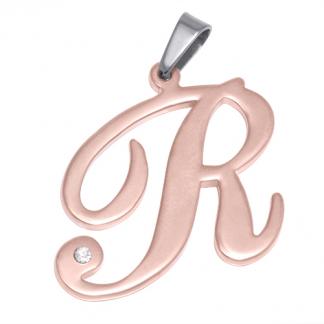 STAINLESS STEEL PENDANT WITH LETTER R WITH 1 CZ IN IP ROSE TWO TONE
