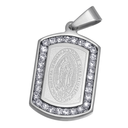 STAINLESS STEEL RELIGIOUS PENDANT WITH GUADALUPE WITH CZ ALL IN STEEL COLOR