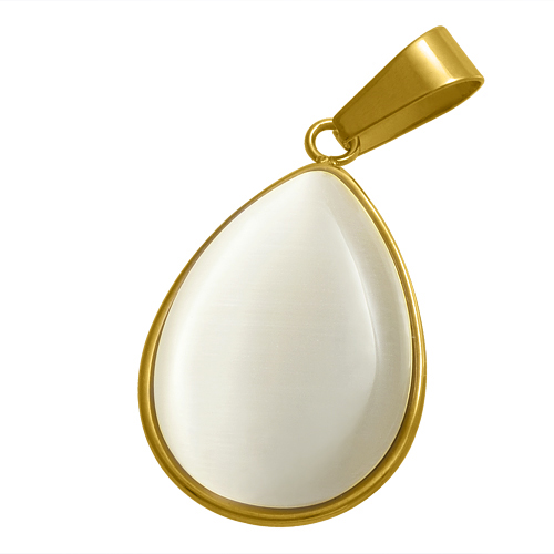STAINLESS STEEL PENDANT IN DROP SHAPE WITH CAT EYE STONE WITH IPG COLOR
