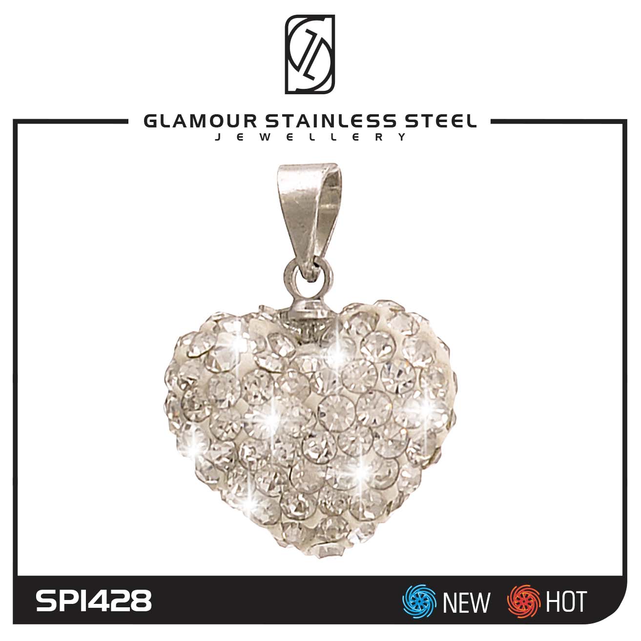 STAINLESS STEEL PENDANT IN HEART SHAPE WITH CZ ALL IN S/S COLOUR