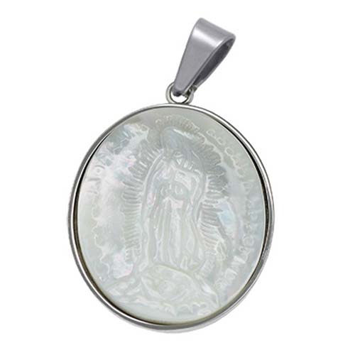 STAINLESS STEEL OVAL PENDANT IN OVAL SHAPE WITH GUADALUPE IN SHELL IN S/S COLOUR