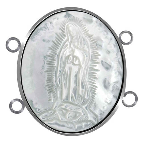 STAINLESS STEEL PENDANT WITH GUADALUPE IN SHELL WITH FOUR HOLD AT THE EDGE IN S/S COLOUR