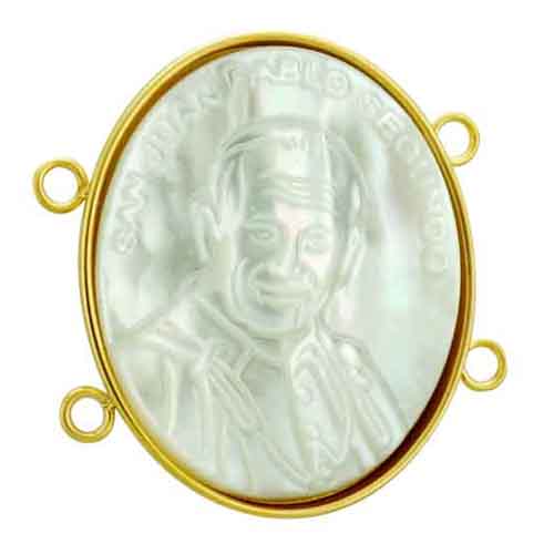 STAINLESS STEEL PENDANT IN OVAL SHAPE WITH SHELL WITH POPE JUAN IN IPG COLOR
