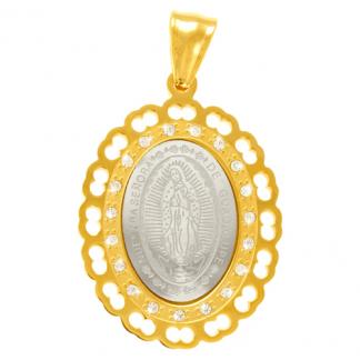 STAINLESS STEEL PENDANT WITH GUADALUPE WITH LASER EFFECT IN IPG TWO TONE