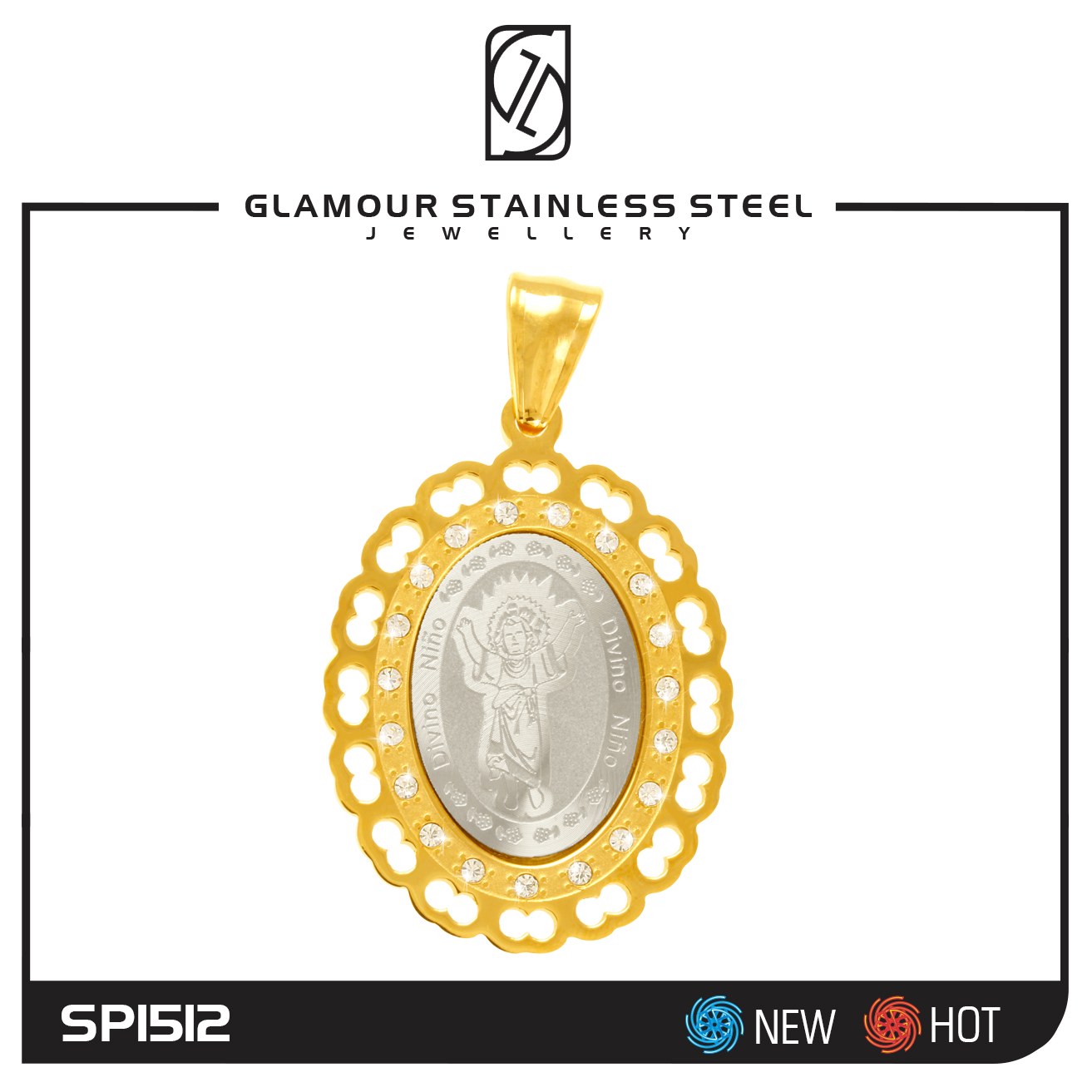 STAINLESS STEEL PENDANT WITH DIVINO NINO WITH LASER EFFECT IN IPG TWO TONE