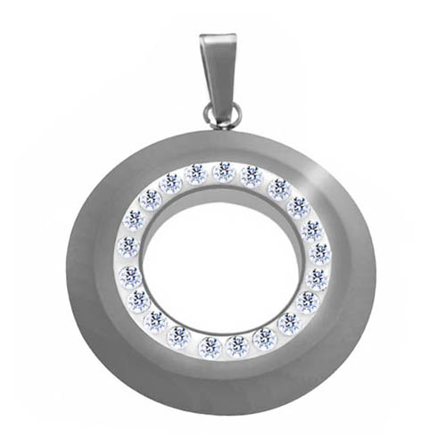 STAINLESS STEEL PENDANT IN CIRCLE SHAPE WITH CZ WITH WINDOWS ON TWO SIDE