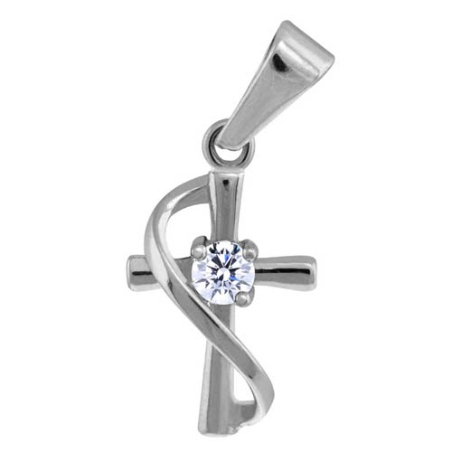 STAINLESS STEEL PENDANT IN CROSS SHAPE WITH CZ