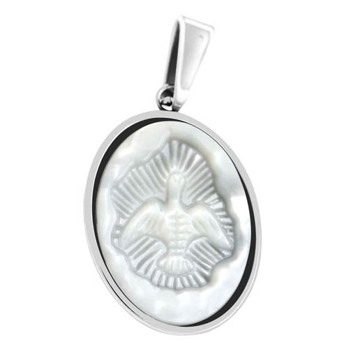 STAINLESS STEEL RELIGIOUS PENDANT ALL IN STEEL COLOR WITH BIRD IN SHELL