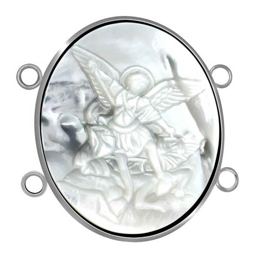 STAINLESS STEEL RELIGIOUS PENDANT ALL IN STEEL COLOR WITH ANGLE IN SHELL WITH FOUR HOLE AT THE EDGE