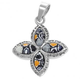 STAINLESS STEEL PENDANT ALL IN STEEL COLOR IN FLOWER SHAPE WITH COLORFUL MURANO STONE
