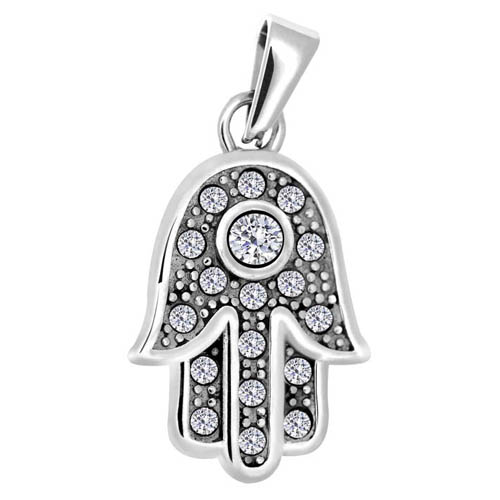 STAINLESS STEEL PENDANT ALL IN STEEL COLOR IN HAMSA SHAPE WITH CZ