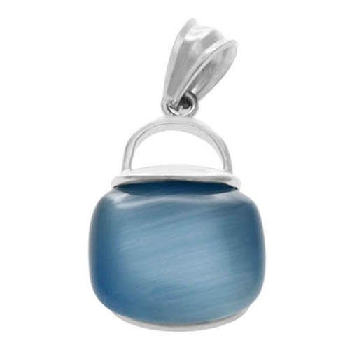 STAINLESS STEEL PENDANT IN HANDBAG SHAPE WITH BLUE CAT EYES STONE IN S/S COLOR