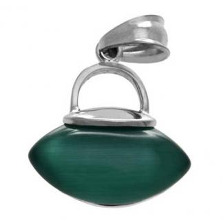 STAINLESS STEEL PENDANT IN HANDBAG OVAL SHAPE WITH GREEN CAT EYES STONE IN S/S COLOR