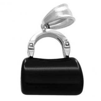 STAINLESS STEEL PENDANT IN HANDBAG SHAPE WITH BLACK ENAMEL IN S/S COLOR