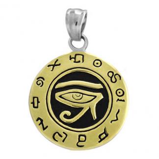 STAINLESS STEEL PENDANT IN CIRCLE SHAPE WITH EGYPT EYES IN IPG TWO TONES WITH BLACK