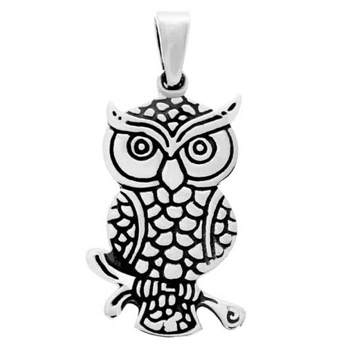 STAINLESS STEEL PENDANT IN OWL SHAPE IN S/S WITH BLACK COLOR