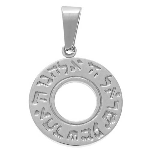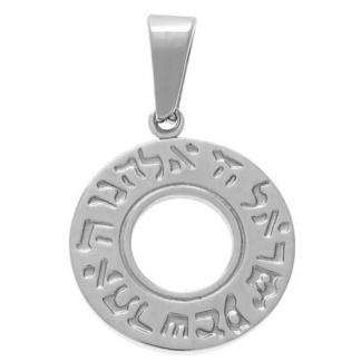 STAINLESS STEEL PENDANT IN CIRCLE SHAPE WITH CUTOUT WITH TEXT PATTERN ALL IN S/S COLOR