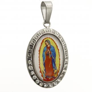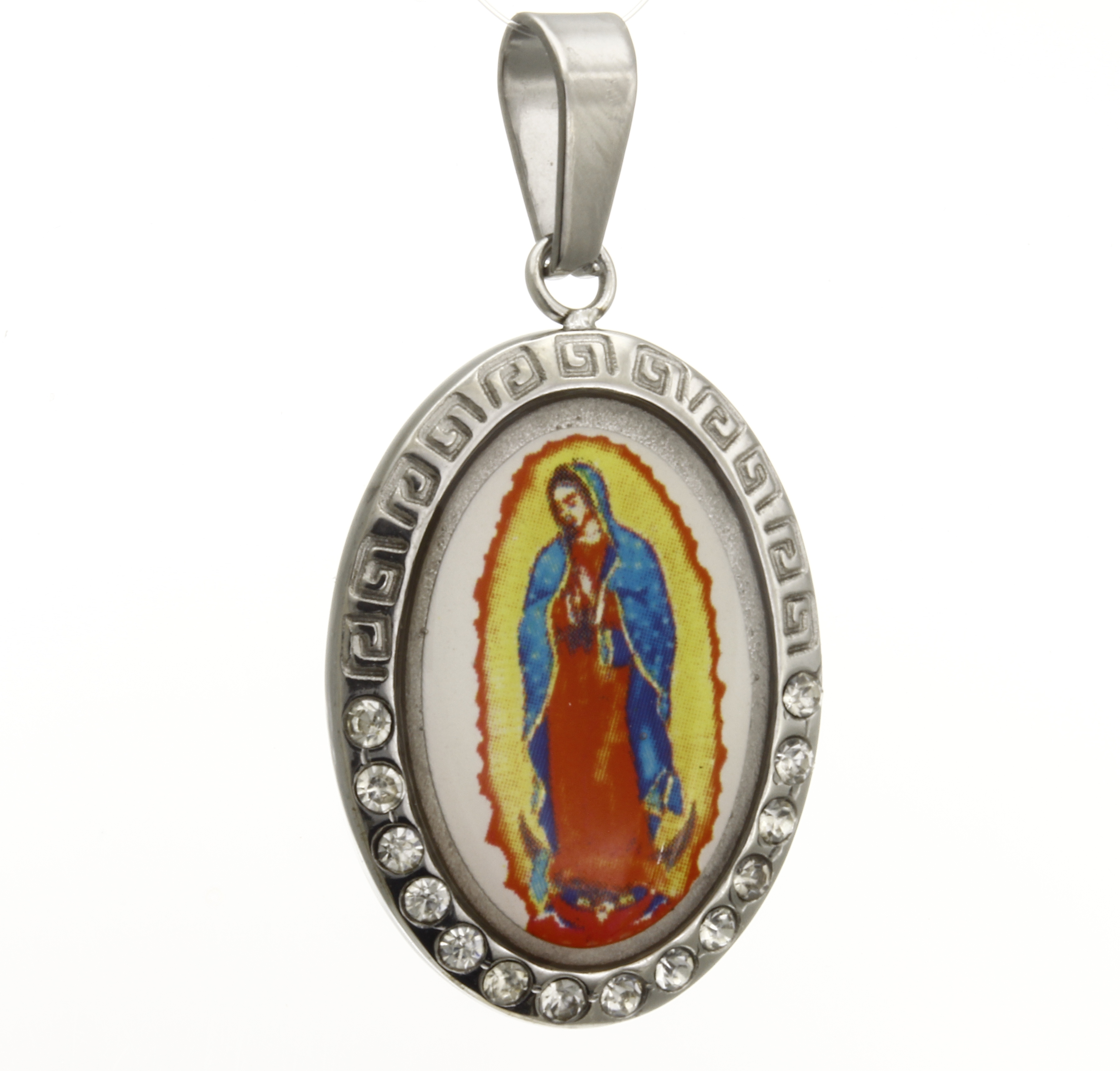 STAINLESS STEEL PENDANT ALL IN S/S COLOR IN OVAL SHAPE WITH GUADALUPE IN COLORFUL IMAGE