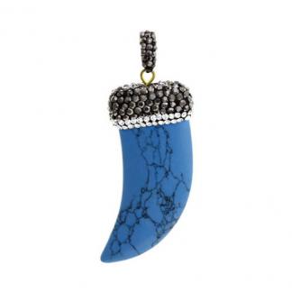 STAINLESS STEEL PENDANT WITH BLUE STONE IN HORN SHAPE WITH BLACK & WHITE CZ