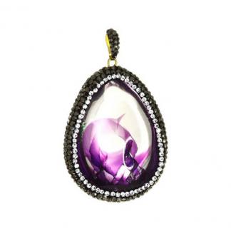STAINLESS STEEL PENDANT DROP SHAPE WITH BLACK AN BLUE STONE WITH BLACK & WHITE CZ IN S/S COLOR