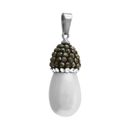 STAINLESS STEEL PENDANT WITH DROP LIKE PEARL WITH BLACK & WHITE CZ ALL IN S/S COLOR