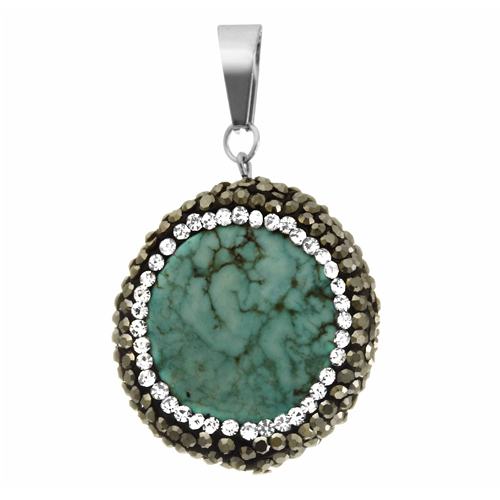 STAINLESS STEEL PENDANT CIRCLE SHAPE WITH AQUAMARINE STONE WITH BLACK & WHITE SHAPE ALL IN S/S COLOR