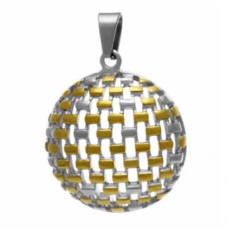 STAINLESS STEEL PENDANT IN CIRCULAR SHAPE WITH A SQUARE PATTERN IN TWO TONE S/S & IPG COLOR.