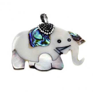 STAINLESS STEEL PENDANT OF SHELL IN ELEPHANT SHAPE WITH BLACK & WHITE CRYSTAL IN S/S COLOR.