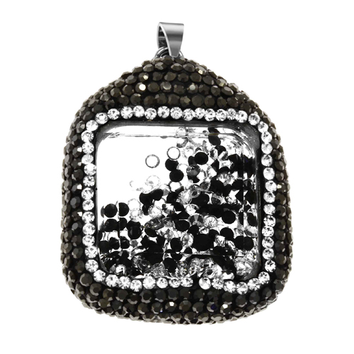 STAINLESS STEEL PENDANT IN A SQUARE SHAPE SEA STONE SHAPE WITH BLACK AND WHITE CZ ALL IN IPG