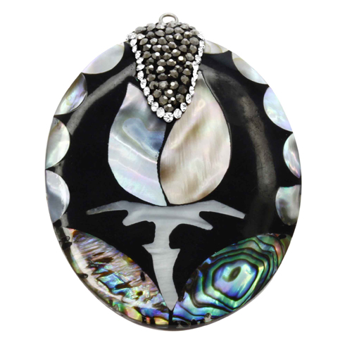 STAINLESS STEEL PENDANT IN CIRCULAR SHAPE WITH A PSYCHEDELIC DESIGN IN A ENAMEL WITH A ROSE IN VARIOUS TONES AND BLACK & WHITE CZ ALL IN S/S