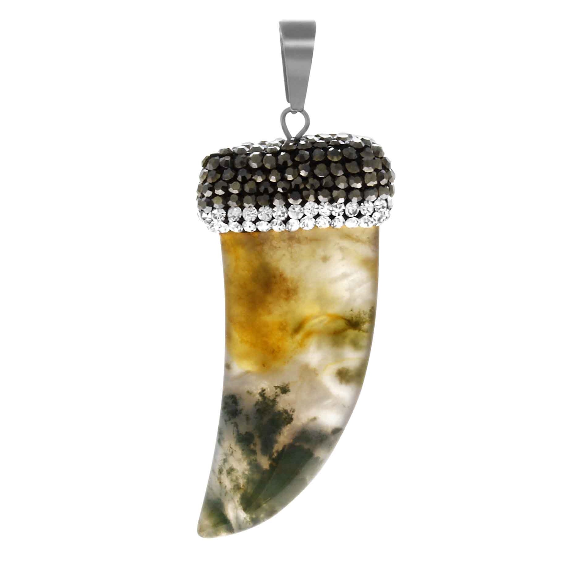 STAINLESS STEEL PENDANT WITH STONE IN HORN SHAPE IN MIXED COLOR WITH BLACK & WHITE CZ ALL IN S/S.