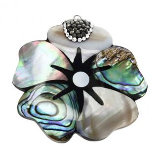 STAINLESS STEEL PENDANT IN SHAPE FLOWER WITH A PSYCHEDELIC DESIGN IN VARIOUS TONES AND BLACK & WHITE CZ ALL IN S/S