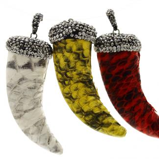 STAINLESS STEEL PENDANT OF STONE IN SHAPE TUSK IN 3 TONES WITH CRYSTAL BLACK & WHITE