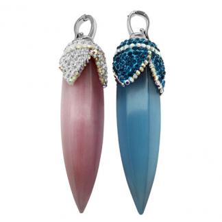 STAINLESS STEEL PENDANT IN BLUE AND PINK WITH CRYSTAL IN S/S COLOR.