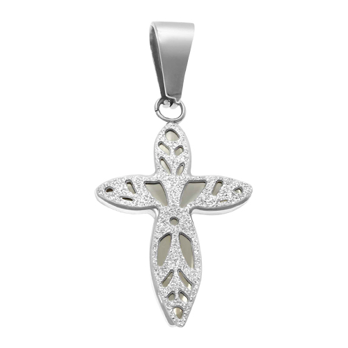 STAINLESS STEEL CROSS PENDANT ALL IN S/S COLOR.