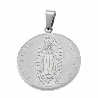 STAINLESS STEEL PENDANT WITH ONE SIDE SAN JUDAS AND THE OTHER SIDE WITH GUADALUPE/ WITH LASER CUT EFFECTION