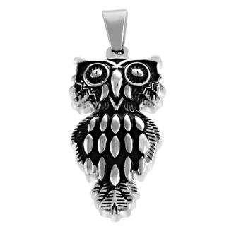 STAINLESS STEEL OWL PENDANT IN BLACK ENAMEL