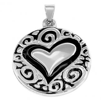 STAINLESS STEEL HOLLOW PENDANT WITH HEART DESIGN AND BLACK ENAMEL