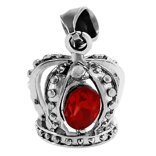 STAINLESS STEEL HOLLOW PENDANT IN CROWN DESIGN WITH ONE RED STONE IN SS COLOR