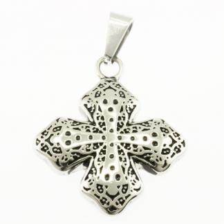 STAINLESS STEEL CROSS PENDANT WITH BLACK OIL PAINTING