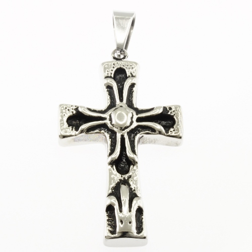 STAINLESS STEEL CROSS PENDANT WITH BLACK OIL PAINTING