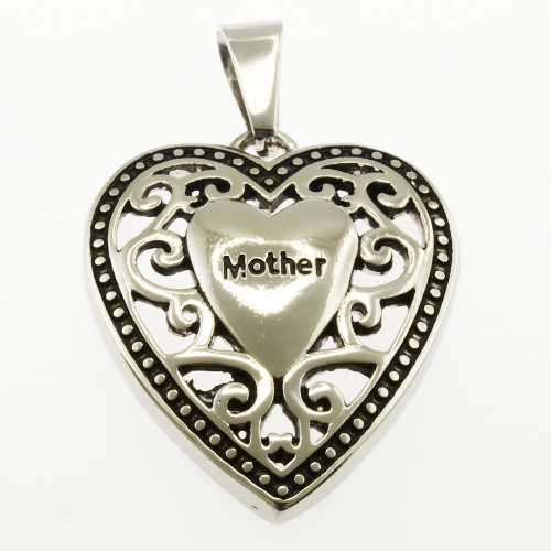 STAINLESS STEEL HEART PENDANT WITH BLACK OIL PAINTING