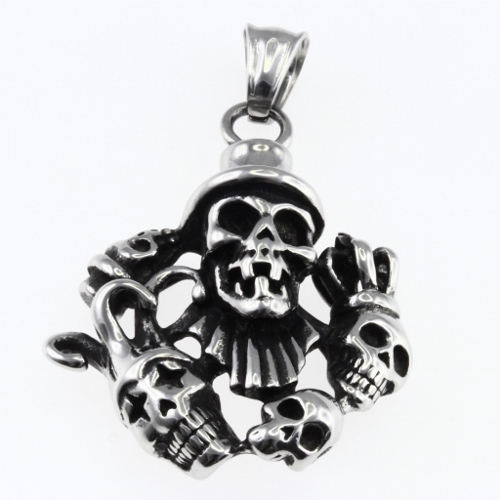 STAINLESS STEEL PENDANT IN SKULL SHAPE IN SS COLOR WITH BLACK OIL PAINTING