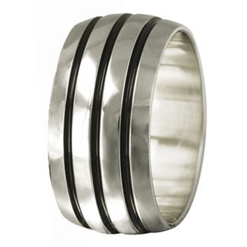 Stainless Steel Fashion Jewellery Ringwith 3 strip in Black Enamel