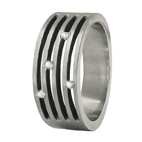 Stainless Steel Fashion Jewellery Ring with CZ In 4 strip in Black Enamel