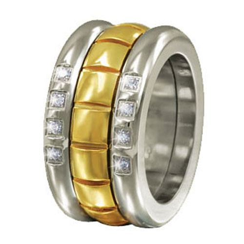 Stainless Steel Fashion Jewellery Ring with 8 CZ In IPG two tones