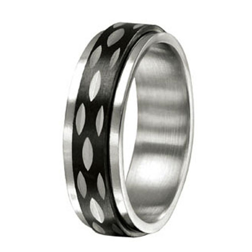 Stainless Steel Fashion Jewellery Ring with Diamond cut In IPB two tones