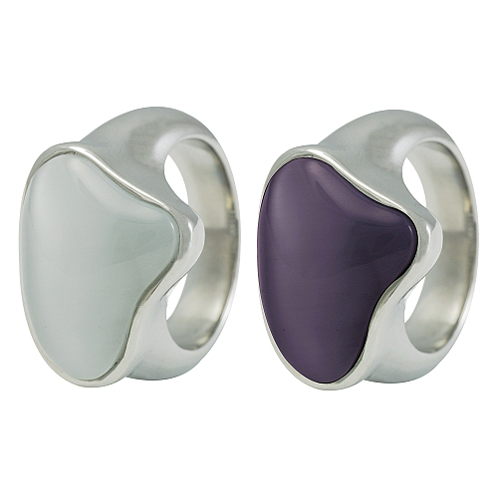 Stainless Steel Fashion Jewellery Ring With Purple stone or White stone (cats eye) In Steel Color